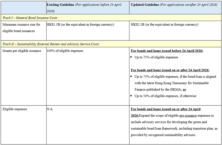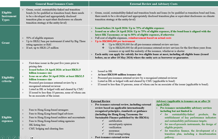 (i) incentivise larger-scale bond issuance in Hong Kong, (ii) further promote the competitiveness of Hong Kong’s GSF ecosystem, and (iii) enhance support for new entrants to the GSF market and emerging areas, such as transition finance